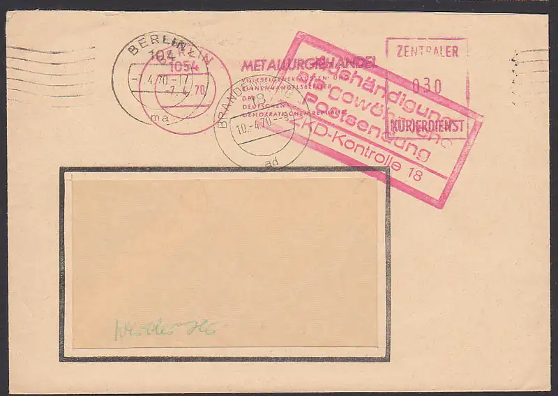 ZKD-Kontrolle 18, roten R4 Aush„ndigung? AFS Metallugiehandel Berlin 7.4.70