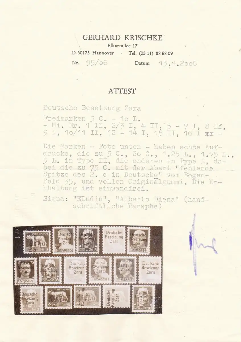 Zara: MiNr. 1-16, verschiedene Typen, postfrisch