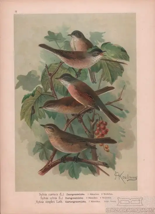 Bemerkungen: Zustand: Blatt leicht fleckig und altersbedingt minimal gebräunt, Lithographie gebräunt, am Rand etwas braunfleckig, Ecken wenig bestoßen, insgesamt gute Erhaltung // Lithographie. Kunstgrafik. Druckgröße: 32,5 x 22,5 cm, Steindruck aus Naturgeschichte der Vögel Mittel
