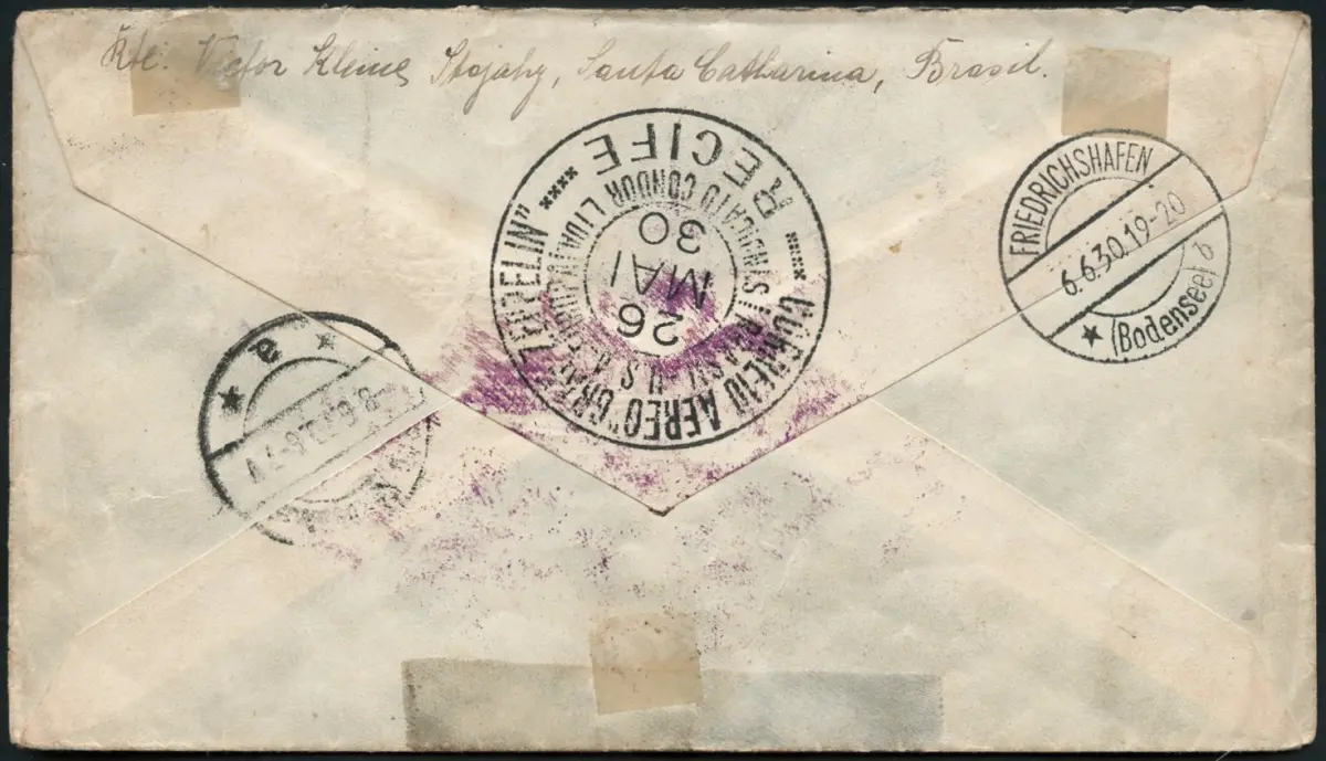 Brief aus Itajahy via Südamerikafahrt 1930 über Recife und Friedrichshafen