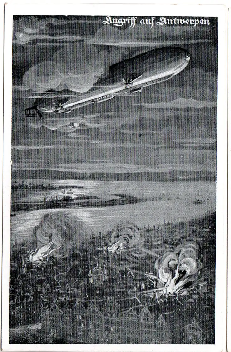 Zeppelin, Beschiessung Lüttichs, ungebr. sw-AK