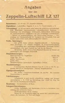 Zeppelin-Luftschiff LZ 127 Handzettel um 1928
