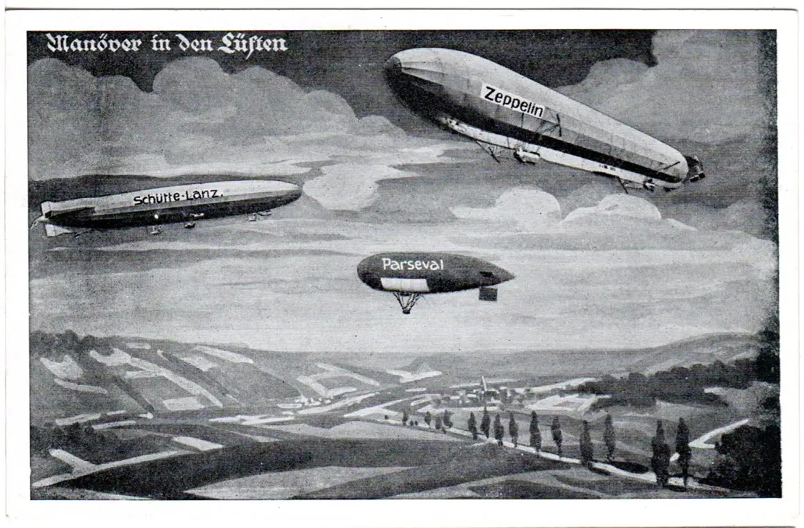 Zeppelin, Schütte-Lanz u. Parseval, Manöver i.d. Lüften, ungebr. sw-AK