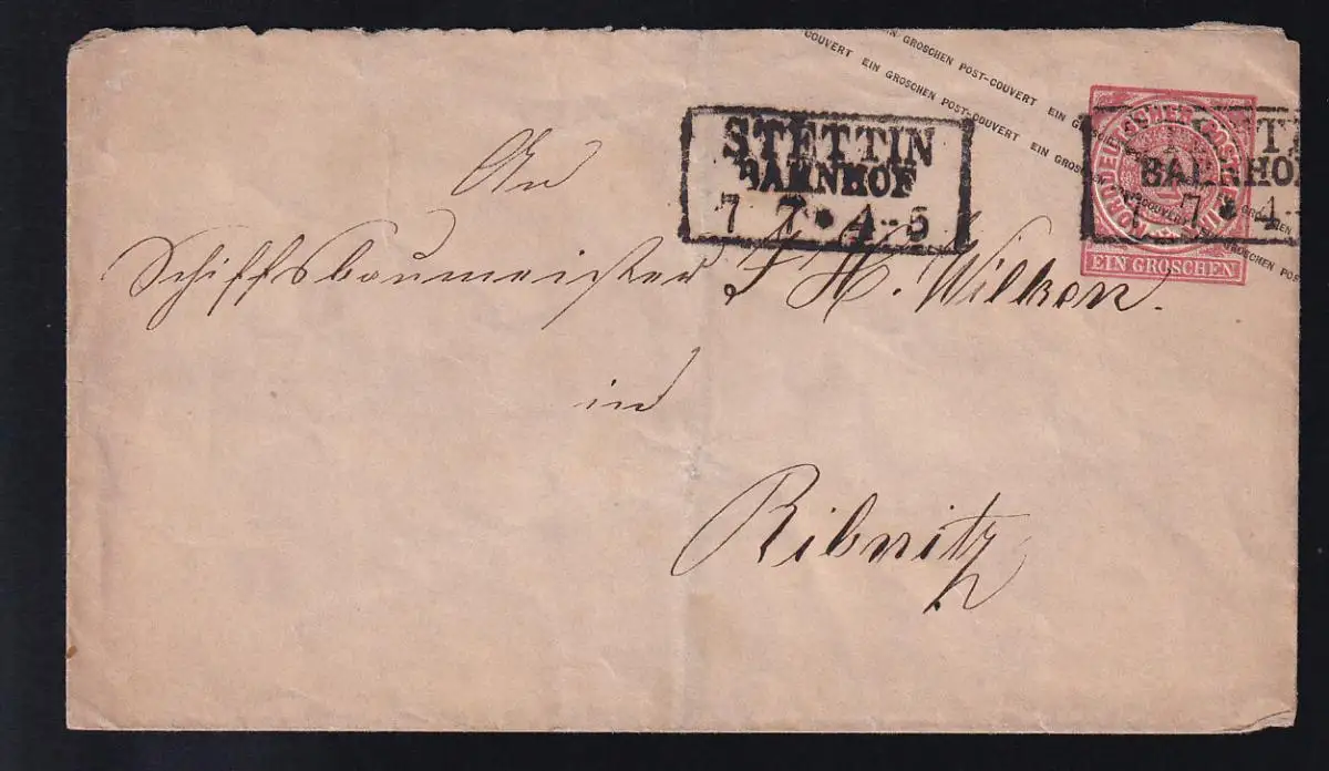 Ziffer 1 Gr. mit R3 STETTIN BAHNHOF 7.7. nach Ribnitz,