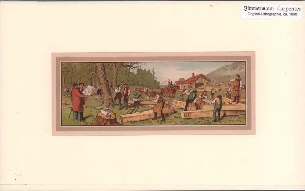 Titel: Zimmermann | Carpenter. Original-Chromolithographie