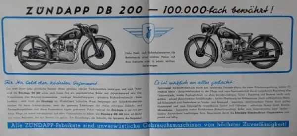 Zündapp DB 200 Modellprogramm 1939 Motorradprospekt (5615)