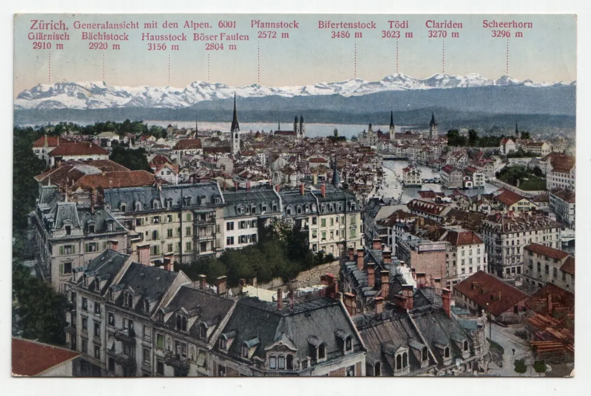 Zürich. Generalansicht mit den Alpen. jahr 1912