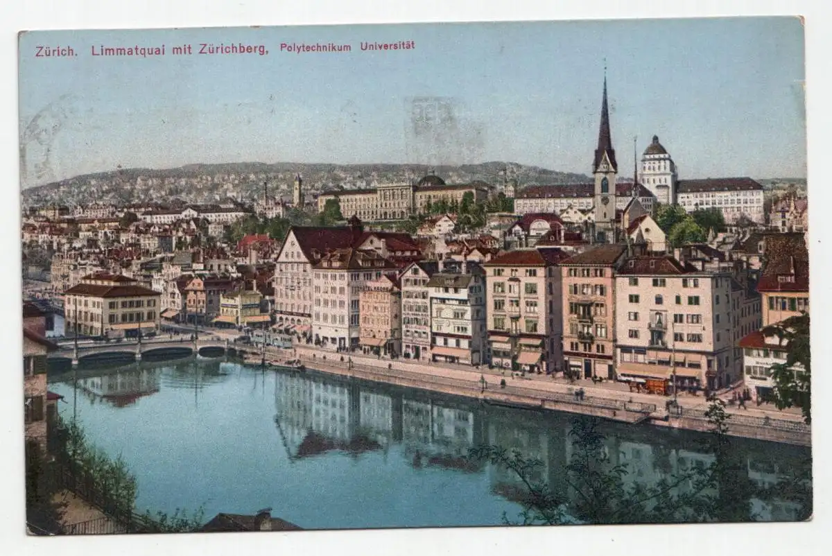Zürich. Limmatquai mit Zürichberg. Polytechnikum Universität. circa 1928