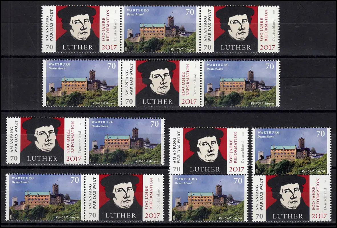 Zusammendruck-Set Luther / Wartburg (4 x 2er, 2 x 3er) UNGEFALTET, **