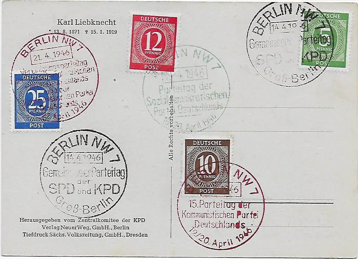 Zusammenlegung KPD und SPD 1946: Parteitag Berlin, AK Karl Liebknecht