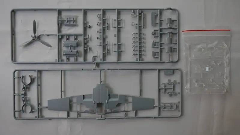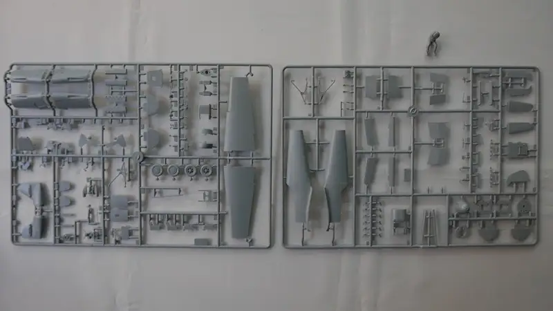 Einzelteile (Plastikbauteile) sind noch am Rahmen fixiert, 1 Bauteil Nr.27 hat sich vom Gussrahmen gelöst. Bauteile nicht eingetütet.