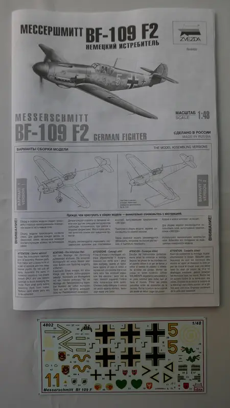 Zvezda Messerschmitt BF-109 F2 German Fighter-1:48-4802-Modellflieger-OVP-0968
