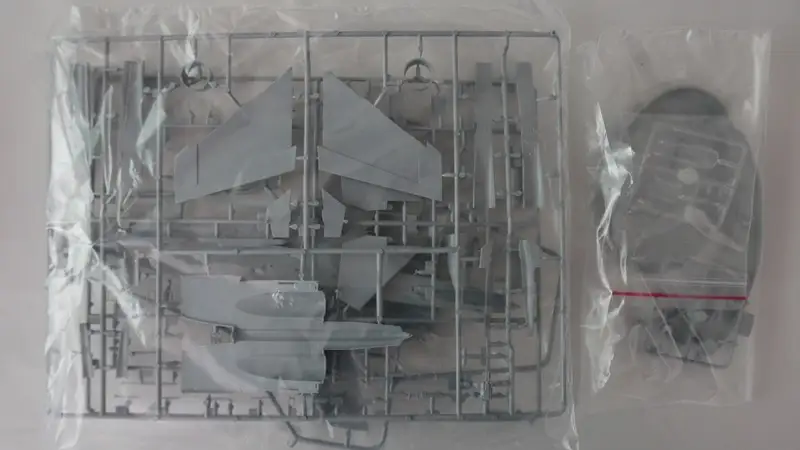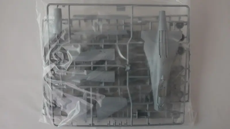 Einzelteile (Plastikbauteile) sind noch am Rahmen fixiert, Sichthülle wurde geöffnet.