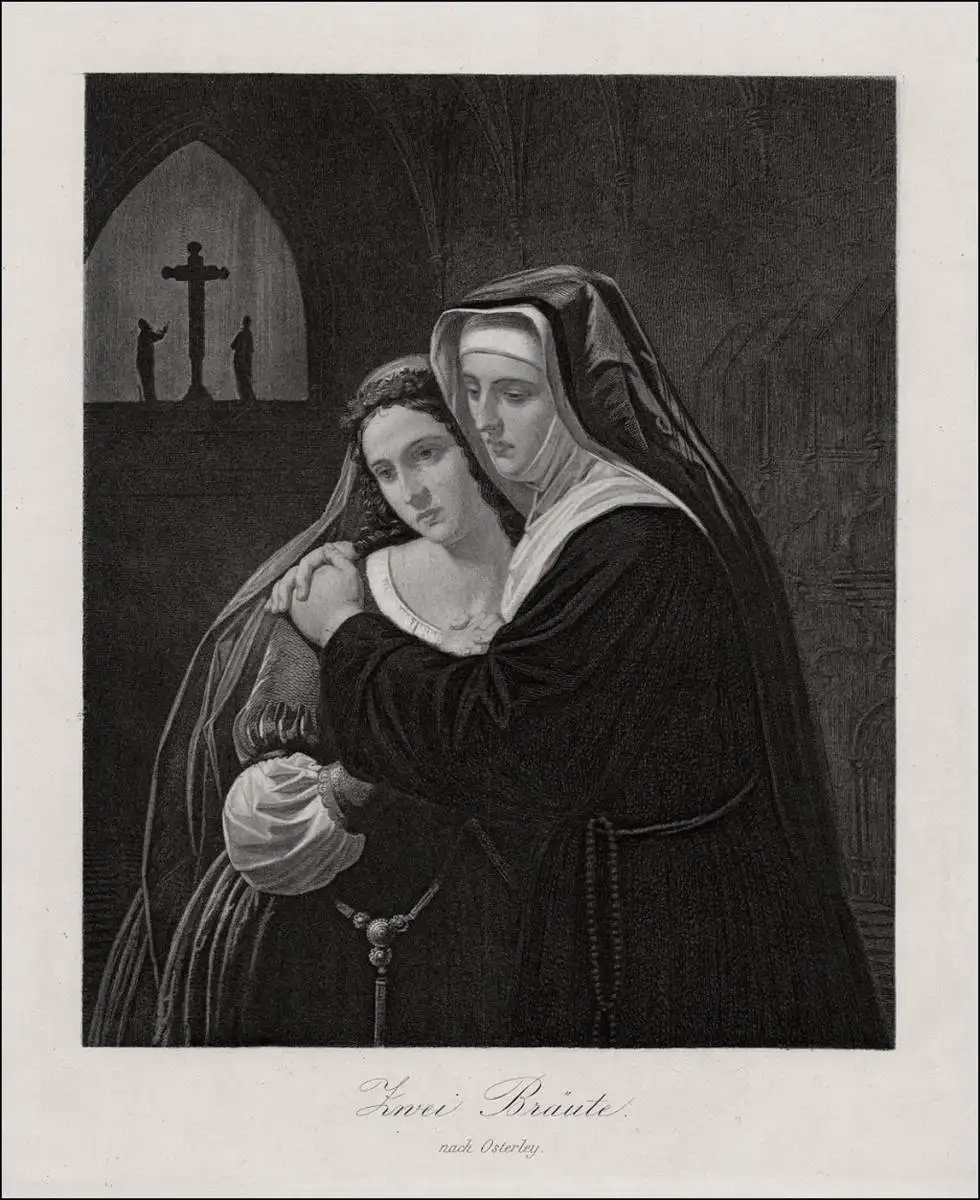 Zwei Bräute. Originaler Stahlstich nach Osterley um 1850