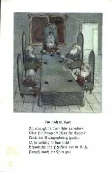Zwerge  im hohen Rat, am Tisch rauchen * ca. 1950