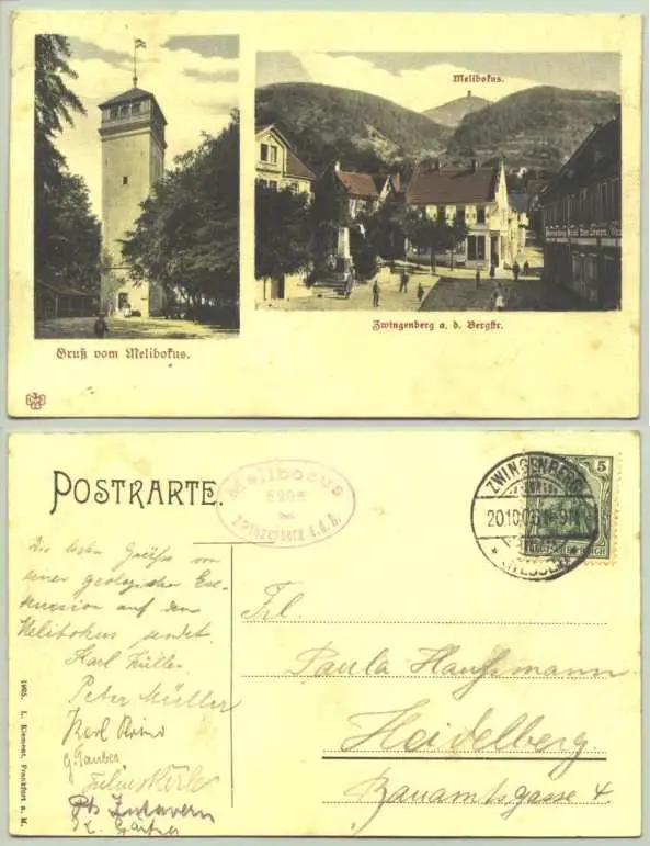 Artikelbeschreibung u. Zustand : Siehe Scan. Weitere Infos : Alte Ansichtskarte "Zwingenberg a. d. Bergstrasse - Gruss vom Melibokus". PLZ-Bereich 64673. Postalisch gelaufen mit Marke u. Stempel von 1906