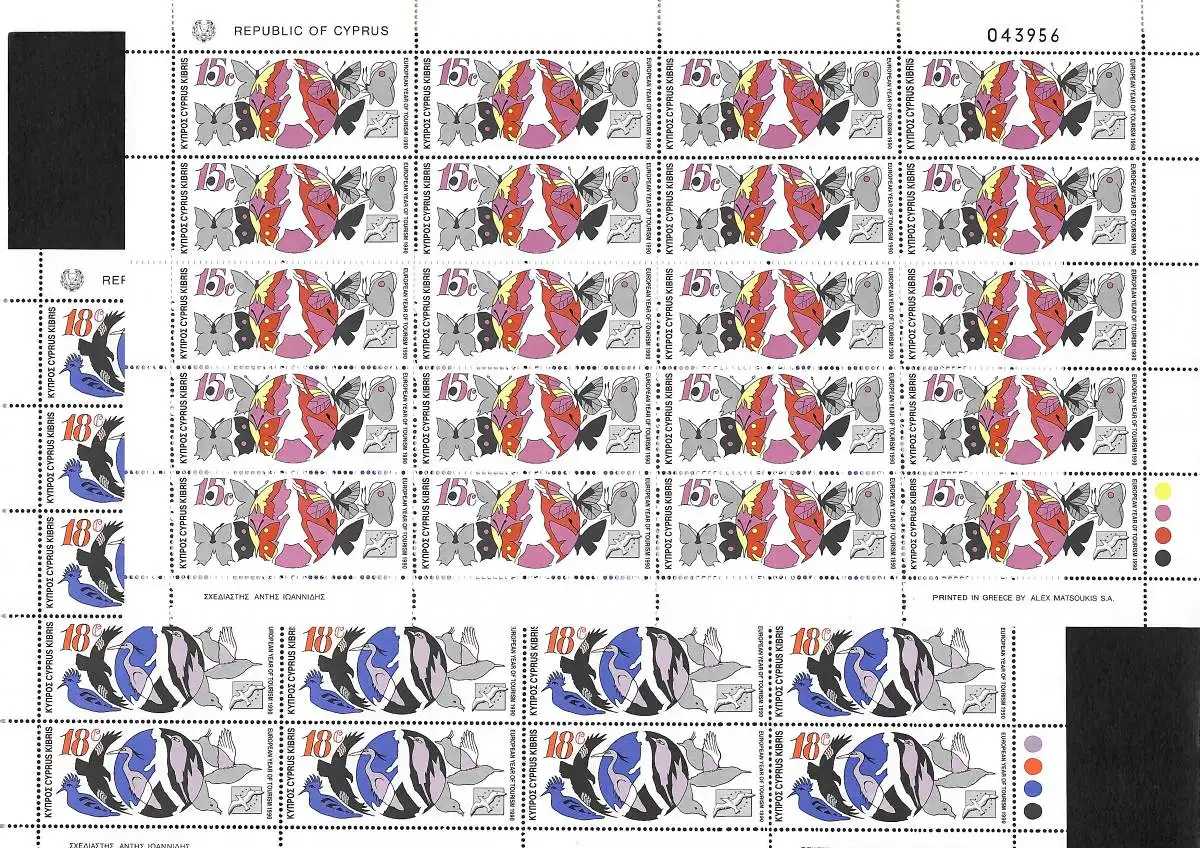 Zypern: 1990 European year of Tourismus postfrisch #750-753, 4x Bogen