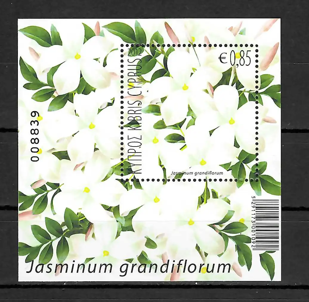 Zypern 2012: Jasminum grandiflorum, Block mit Jasminduft, postfrisch