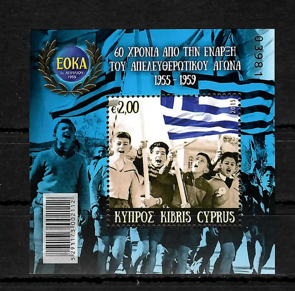 Zypern 2015: Ausbruch des Befreiungskampfes der IOKA, Block postfrisch
