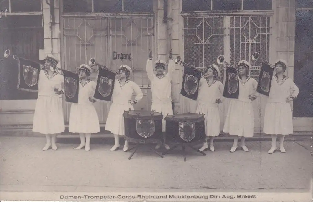 alte AK Damen-Trompeter-Corps Mecklenburg , August Breest um 1920 , Rostock !!!