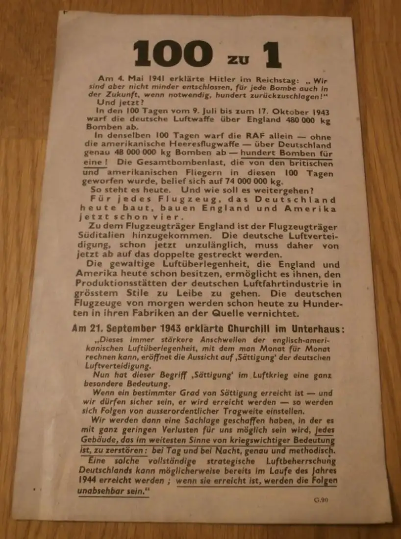 altes Original - Flugblatt 1944 , Achtung Lebensgefahr , Selbstvernichtung , Flugzeuge , Kapitulation , Propaganda !!AZ-WR/1M