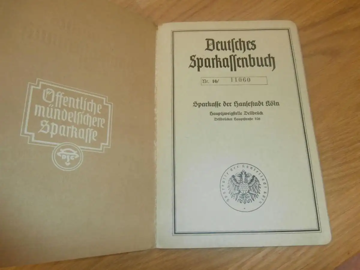 altes Sparbuch Köln Dellbrück , 1940 - 1946 , Margot Heppekausen in Köln Dellbrück , Sparkasse , Bank !!