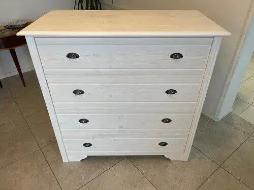 Zum Verkauf steht eine bezaubernde Kommode aus Fichtenholz , welche im alten Stile aus Vollholz gefertigt wurde