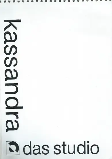 das studio. Berlin, Knesebeckstr. 3: Programmheft zu: Kassandra. Nach einer Erzählung von Christa Wolf. Bühnenbearbeitung und Regie: Alexander Müller. Bühne und Kostüme: Astrid Reinhardt. Darsteller: Sandra Markus und Monika Stenzel. Premiere: 5. 12. 1987