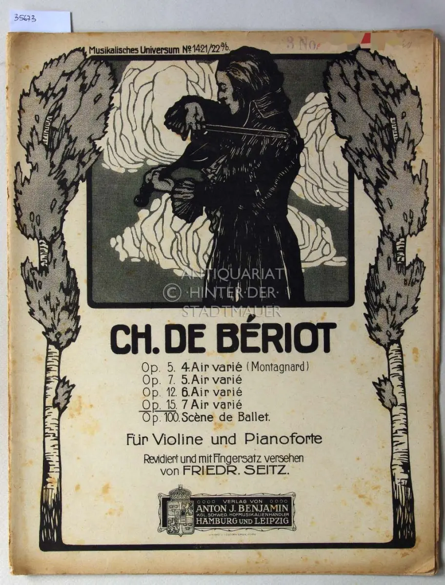 Titel: Op. 15 No. 7 Air varié. Für Violine und Pianoforte. [= Musikalisches Universum no. 1421/22 a/b] Rev. u. m. Fingersatz vers. v. Friedr. Seitz