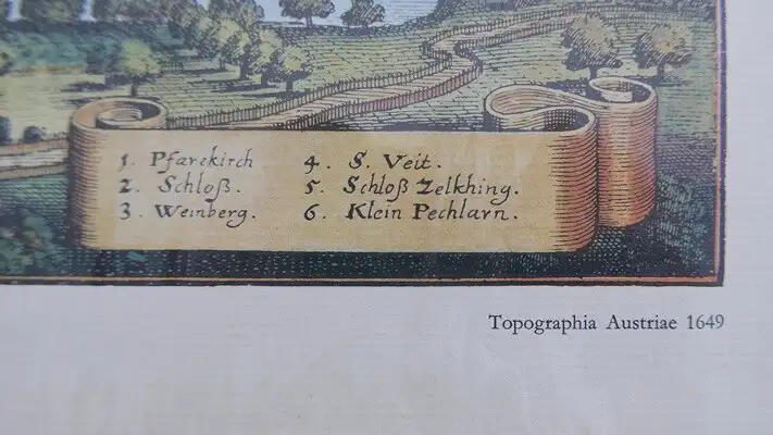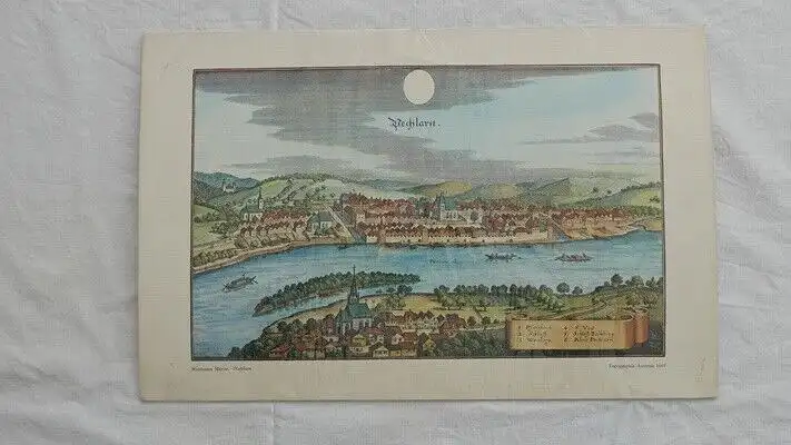 Ein schöner teils hand colorierter Druck auf Papier mit Karton hinterlegt, foliert verpackt, Motiv: alte Stadtansicht von Pöchlarn Die Bilder sind Teil der Beschreibung und sprechen für sich. \n\nMaße: ca. 41,5 cm breit ca. 27 cm hoch weltweiter Versand möglich - Kosten auf Anfrage.