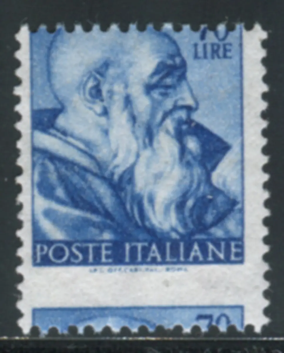 Vollgummi - Michelangelo Lire 70 Nr. 909/Im schönen Exemplar mit stark vertikal verschobener horizontaler Verzahnung - Ungewöhnlich - Kat. euro 165 Code 743/3