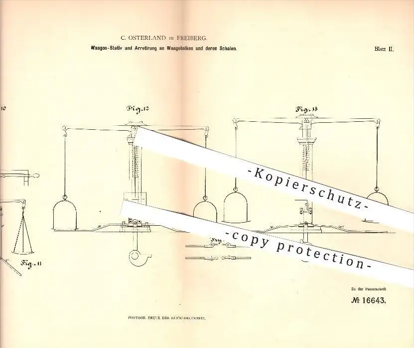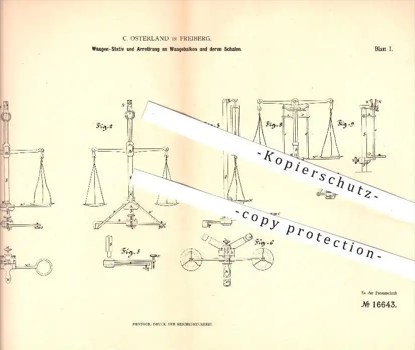 original Patent - C. Osterland , Freiberg ,1881, Stativ für Waagebalken , Waagschale , Waage , Waagen , Wiegen , Gewicht