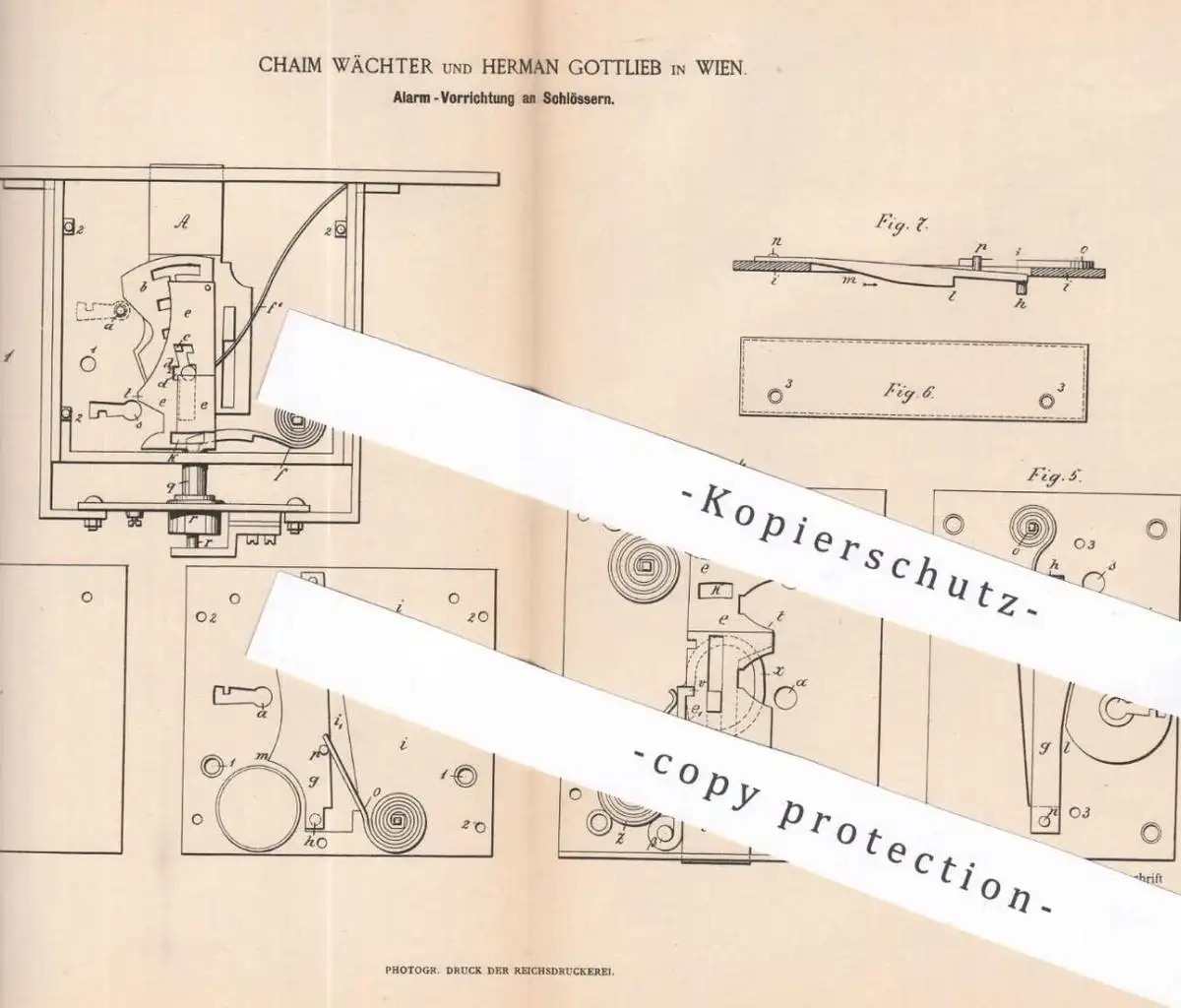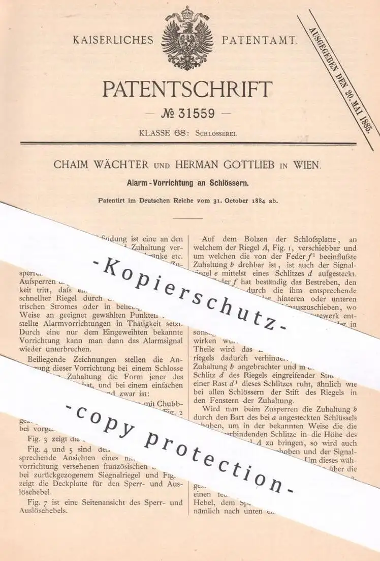 original Patent - Chaim Wächter , Herman Gottlieb , Wien , Österreich , 1884 , Alarm an Schloss | Türschloss , Schlosser