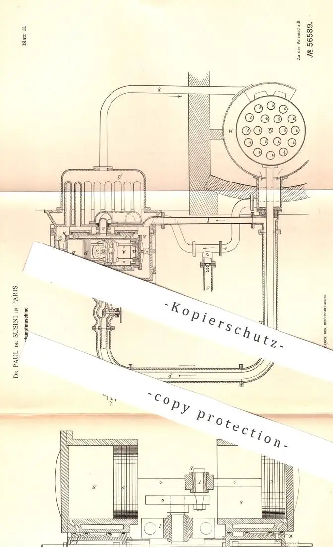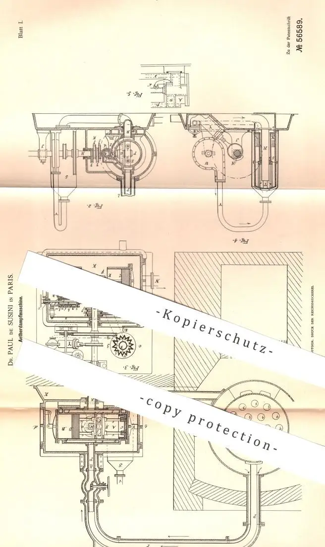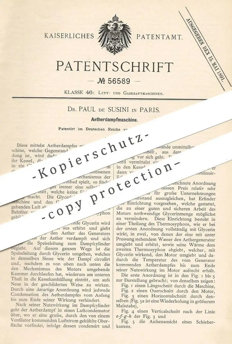 original Patent - Dr. Paul de Susini , Paris , Frankreich , 1890 , Aetherdampfmaschine | Aether - Dampfmaschine | Motor