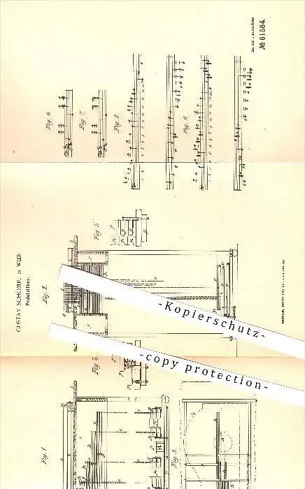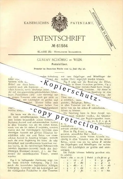 original Patent - Gustav Schömig in Wien , 1891 , Pedalzitter , Zitter , Zittern , Musik , Musikinstrumente !!!
