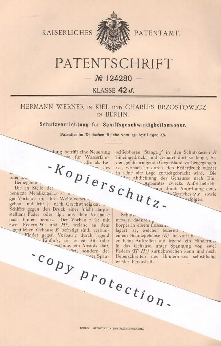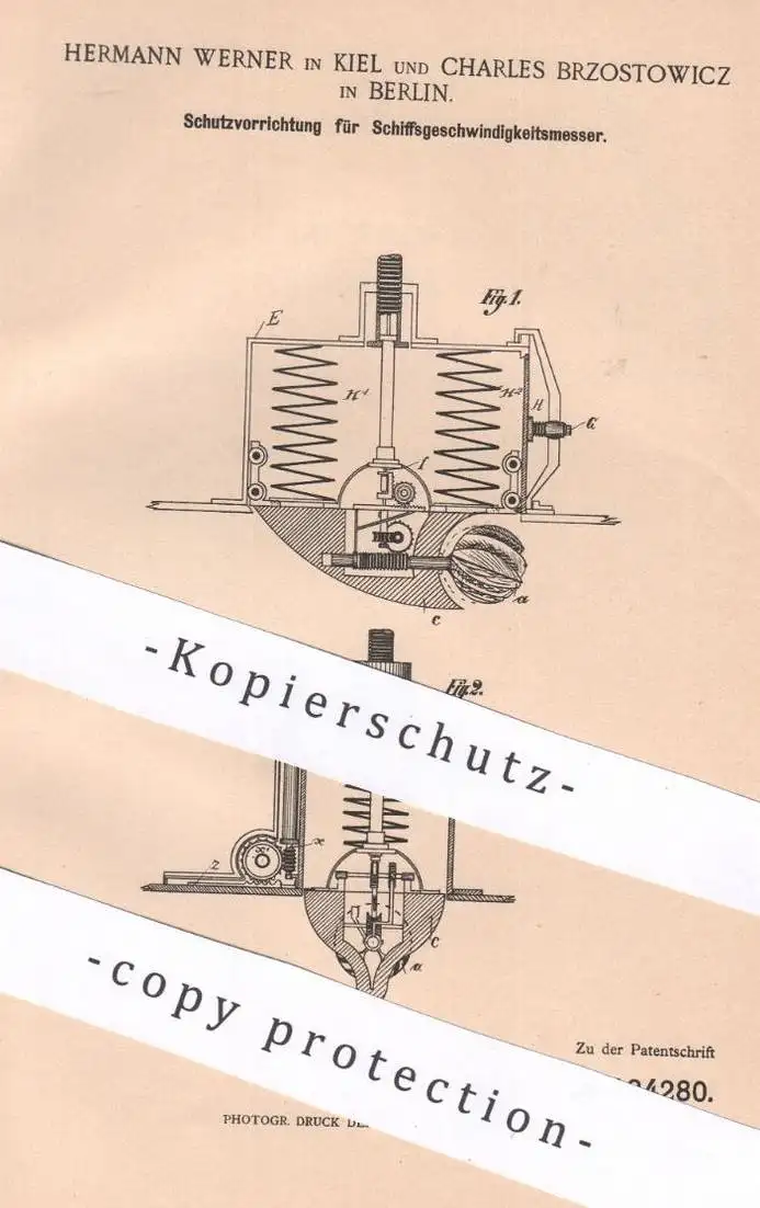 original Patent - Hermann Werner , Kiel | Charles Brzostowicz , Berlin | Schiffsgeschwindigkeitsmesser | Schiffe