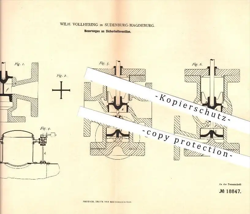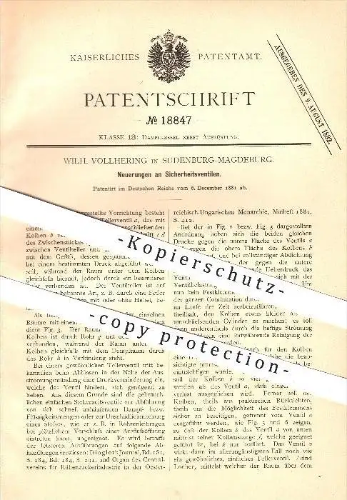 original Patent - Wilh. Vollhering in Sudenburg-Magdeburg , 1881 , Sicherheitsventile , Dampfkessel , Kessel !!!