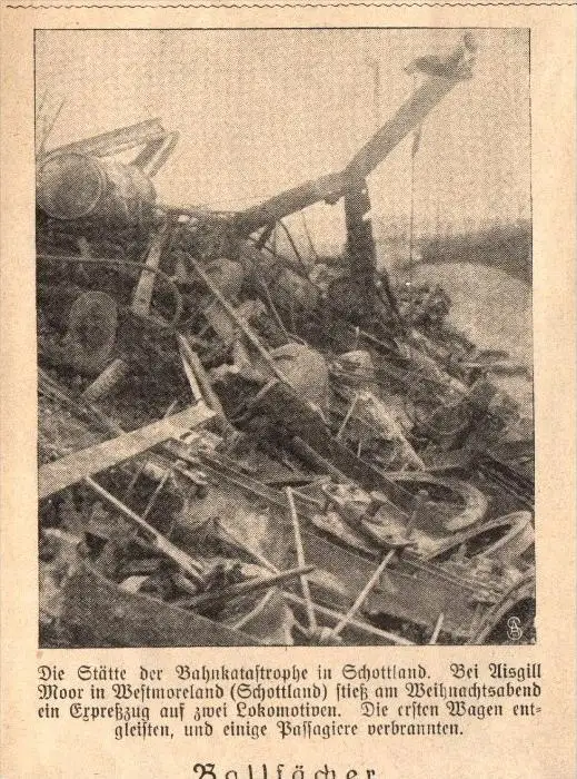 original Zeitungsausschnitt - 1911 - Rail disaster in Aisgill Moor , scotland !!!