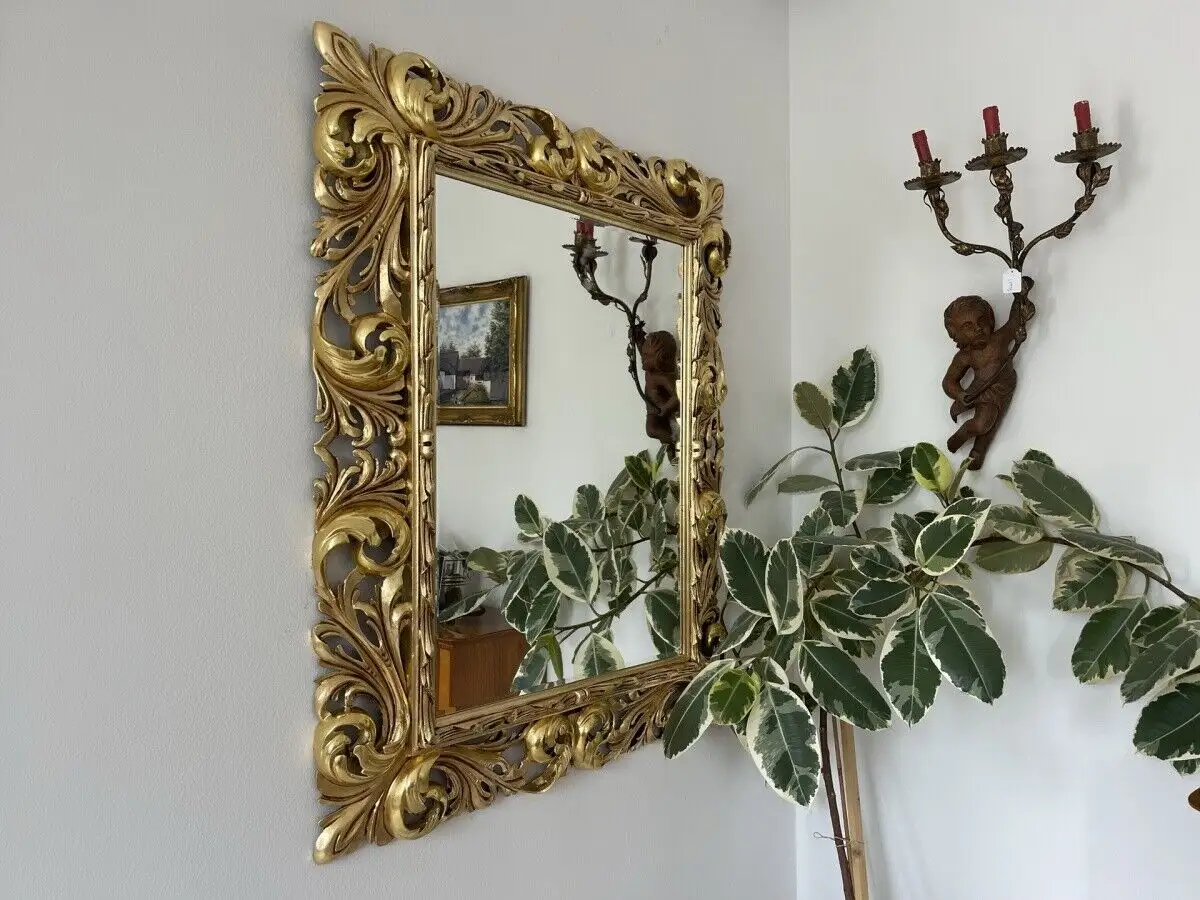 originaler barocker Florentinerspiegel mit Akanthusblattschnitzkunst Holzschnitzkunst