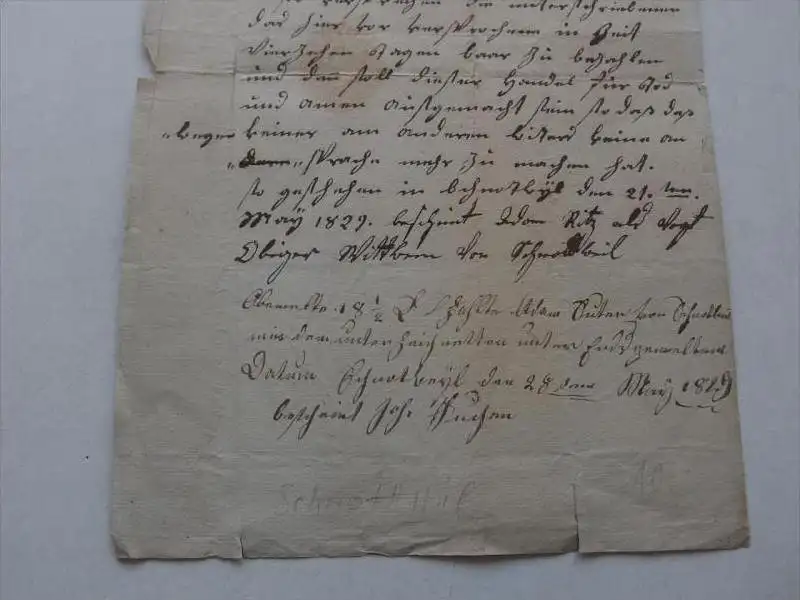 sehr alter Brief Schnottwil 1829. 2 S. ,