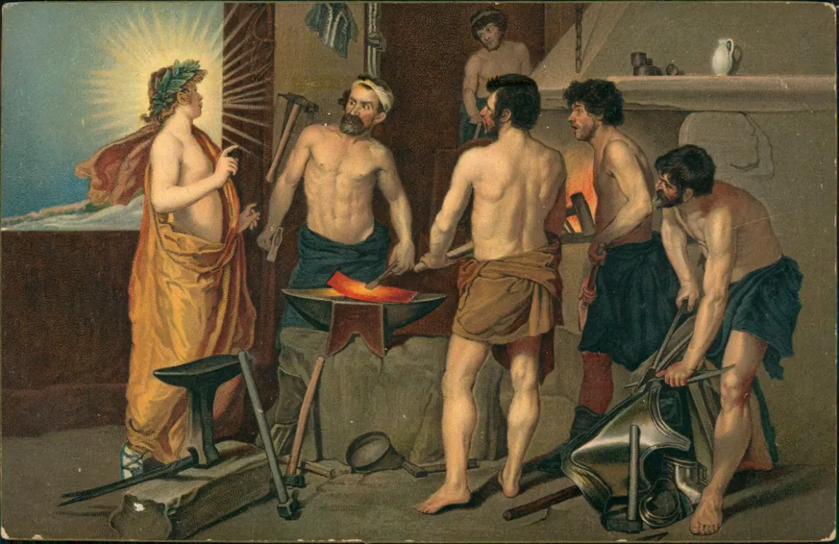 Ansichtskarte Künstlerkarte Schmiede Engel La Fragua de Vulcano 1912