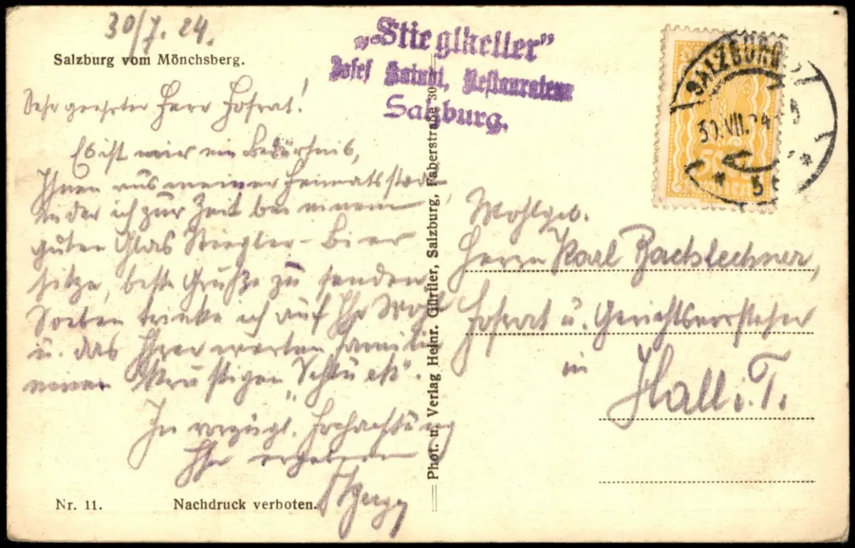 Ansichtskarte Salzburg vom Mönchsberg 1924