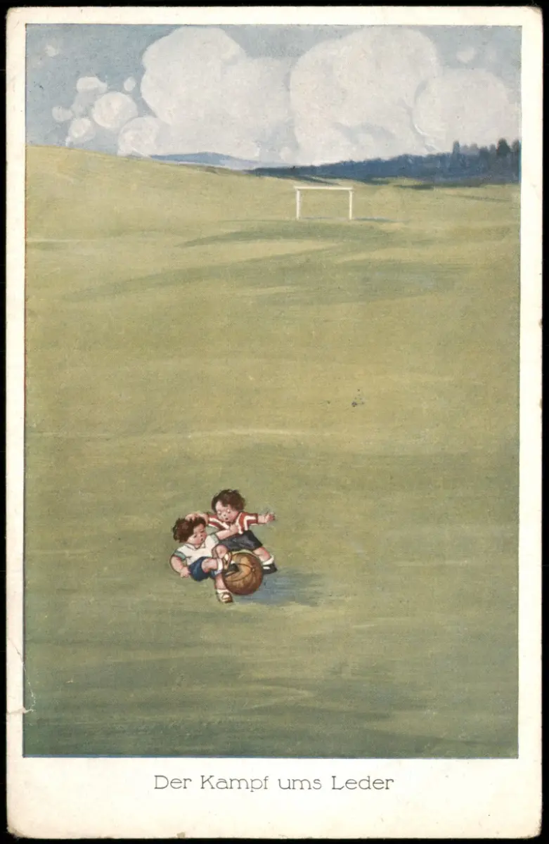 Name: Der Kampf ums Leder Künstlerkarte Kinder beim Fußball Fußballplatz