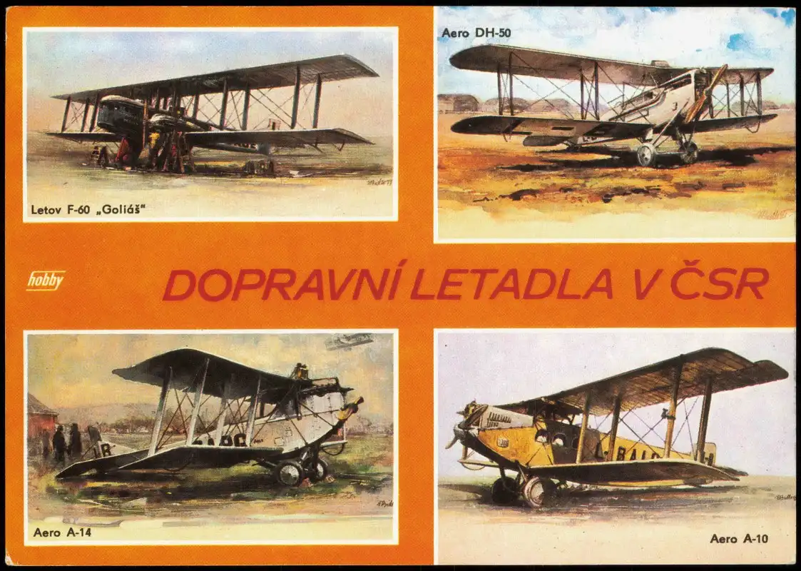 Mehrbildkarte Flugzeuge (Doppeldecker) HOBBY POHLEDNICE LETADLA 1980