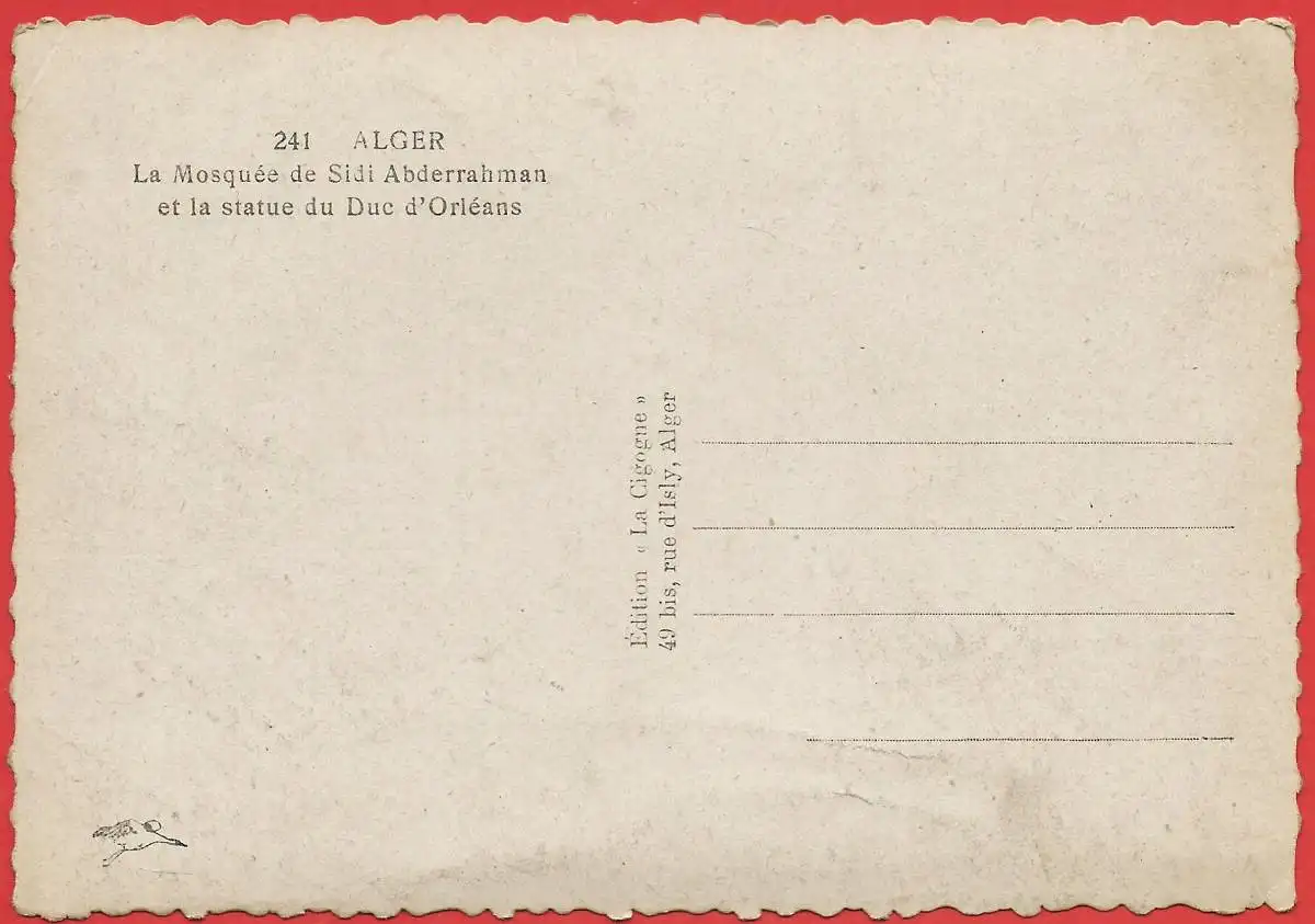 Motiv: Alger : Mosquée Sidi Abderrahman et la statue du Duc d'Orléans. Verlagsangaben: La Cigogne, 241.