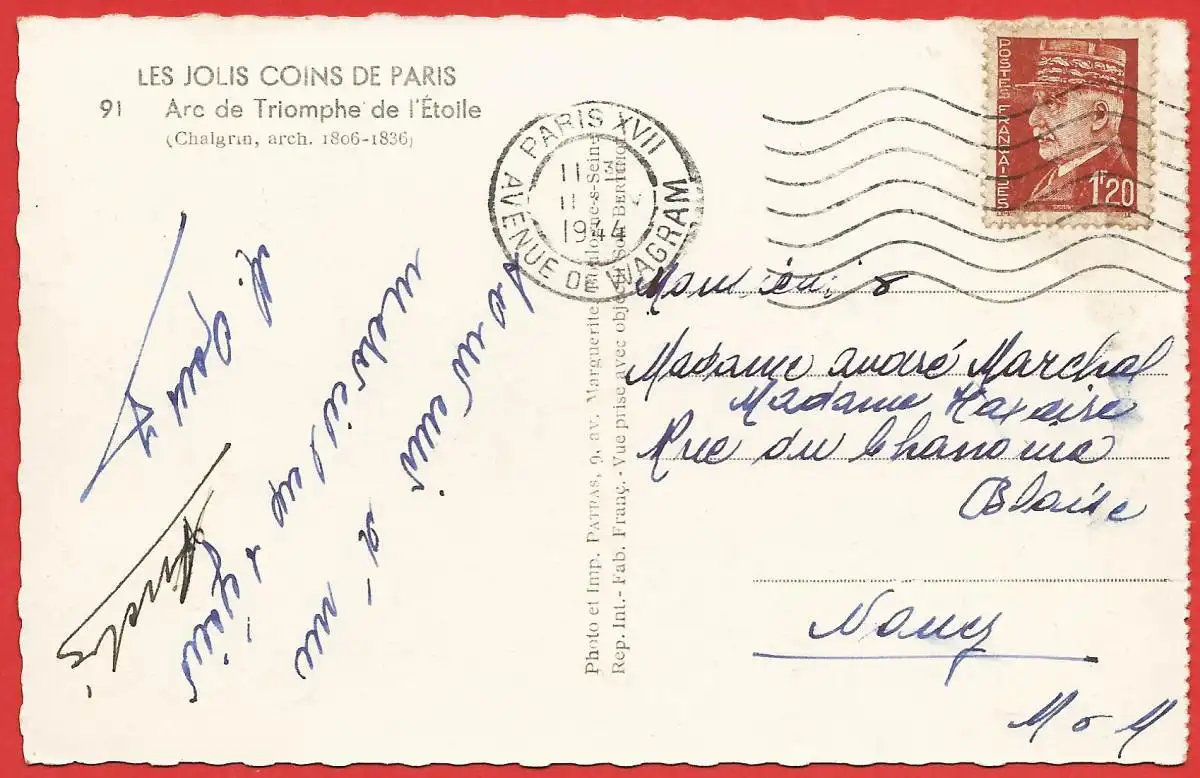Motiv: Frankreich - Paris : Triumphbogen des Etoile. Verlagsangaben: Patras, 1944.