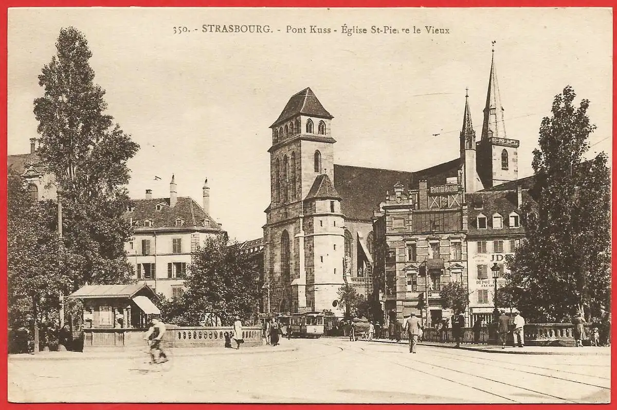 Motiv: Strasbourg : Le pont Kuss et l'église Saint-Pierre le Vieux. Verlagsangaben: Bergeret, 350.