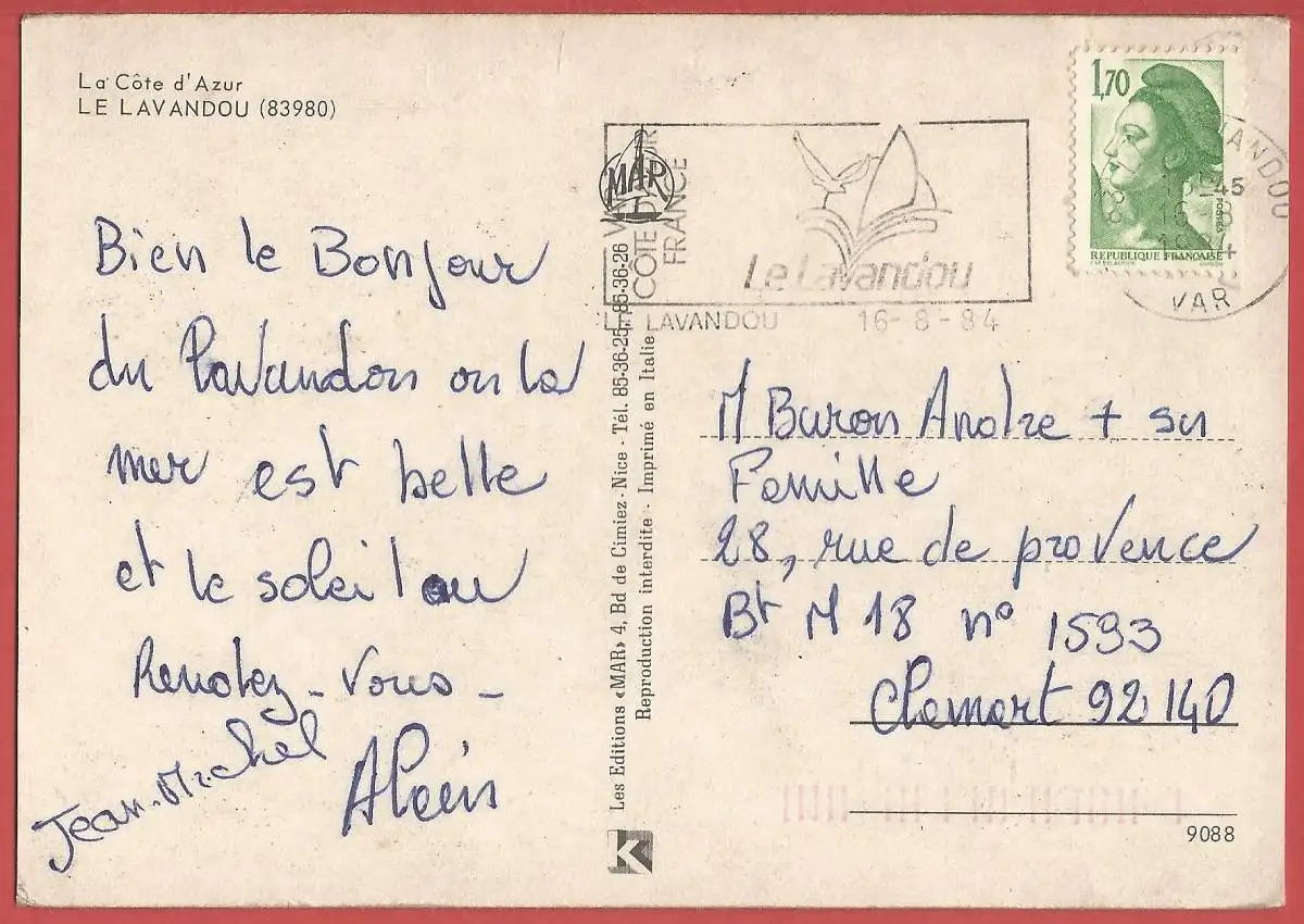 Motiv: Souvenir du Lavandou. Verlagsangaben: France, MAR, 1984.