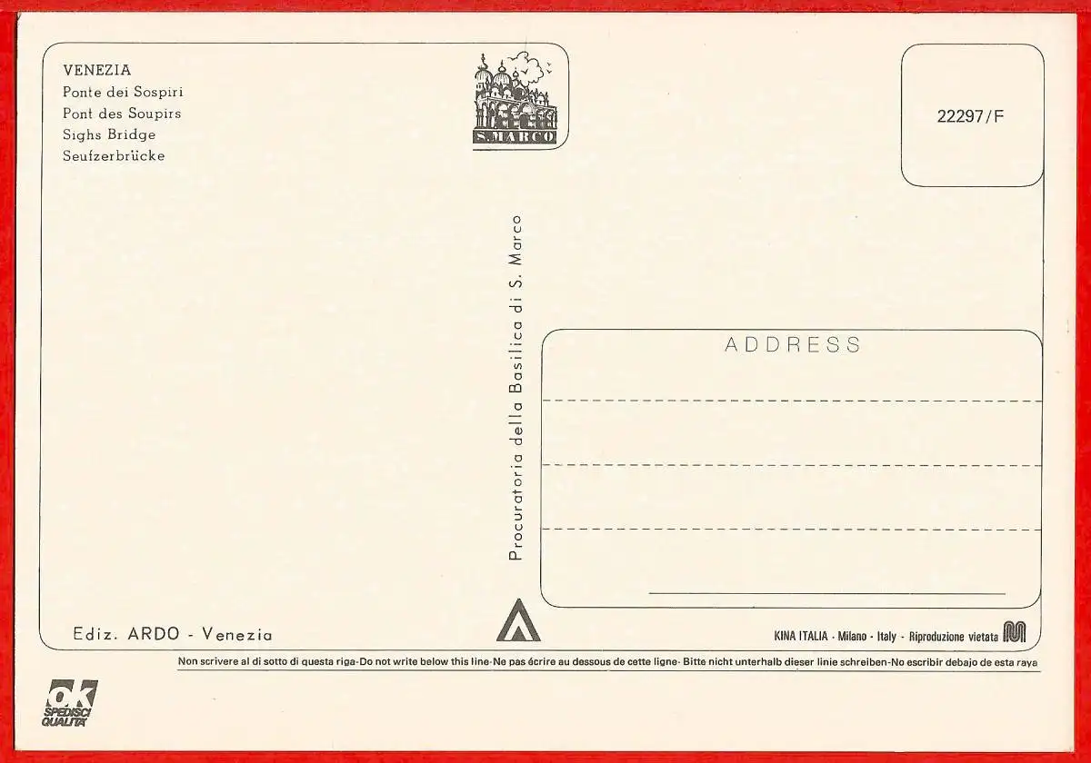 Motiv: Italie - Venise : Le Pont des Soupirs. Verlagsangaben: ARDO, 22297 F.