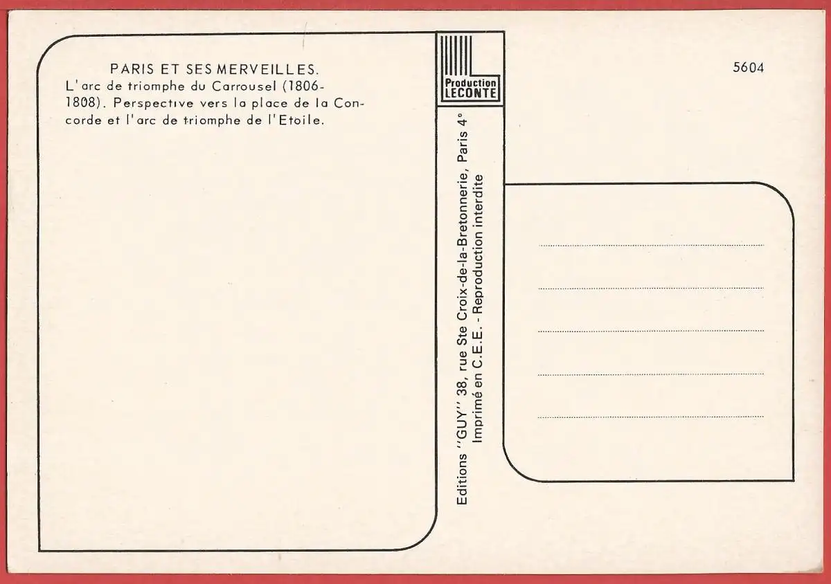 Motiv: Arc de Triomphe du Carousel. Verlagsangaben: Guy, 5604.